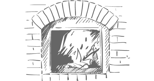 Salón social con chimenea